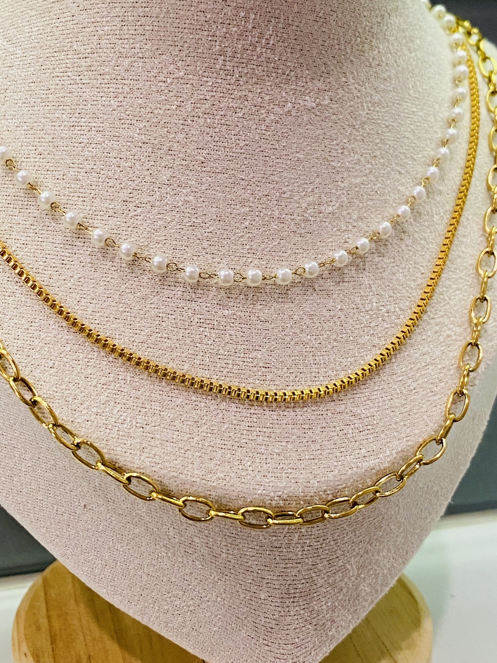 ¡Dale un toque especial a tu estilo con nuestro Lindo collar de tres tipo de Cadena en acero inoxidable! Este collar es más que un accesorio; es una declaración de elegancia y modernidad.
